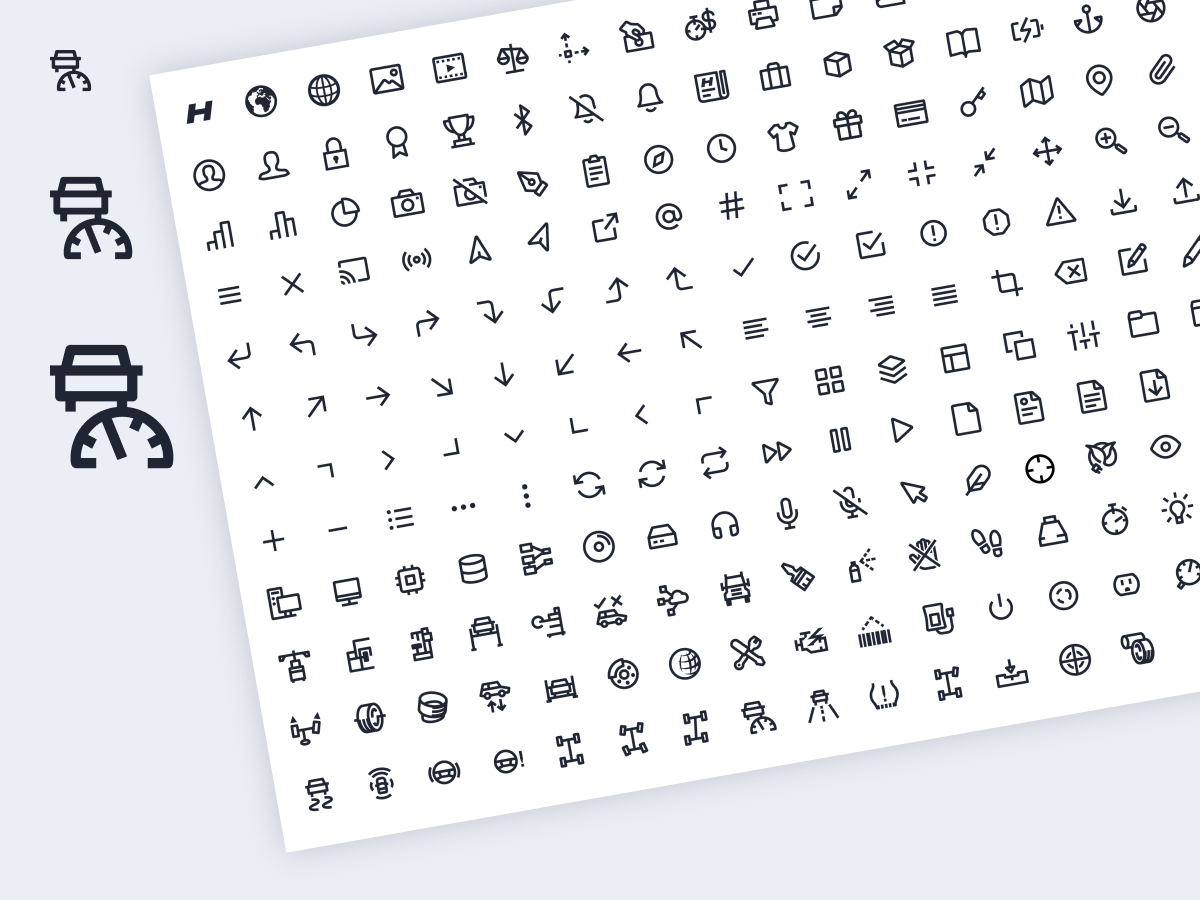 Die Ikonografiebibliothek von Hunter wurde entwickelt, um die Vertrautheit alltäglicher Symbole mit den branchenspezifischen Details des Fahrzeug-Unterboden-Services zu kombinieren.