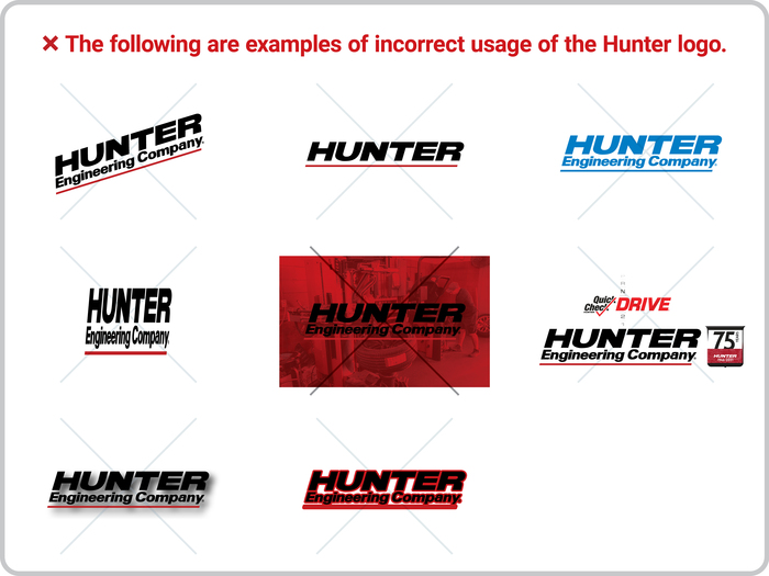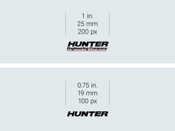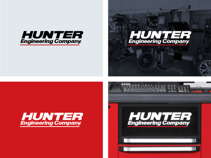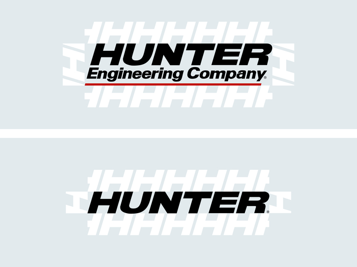 Whenever possible, use the full Hunter Engineering Company logo with red rule. The color of the background determines if the black or white versions should be used. Ensure there is good contrast for the logo to stand out.