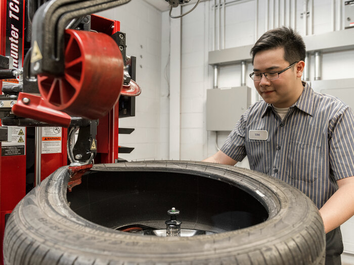 Anthony Ramirez, owner of Autotronica in Anaheim, CA, loves using the WalkAway™ feature on his Revolution™ tire changer, because he can balance a wheel while the tire changer does the work, increasing productivity and efficiency.