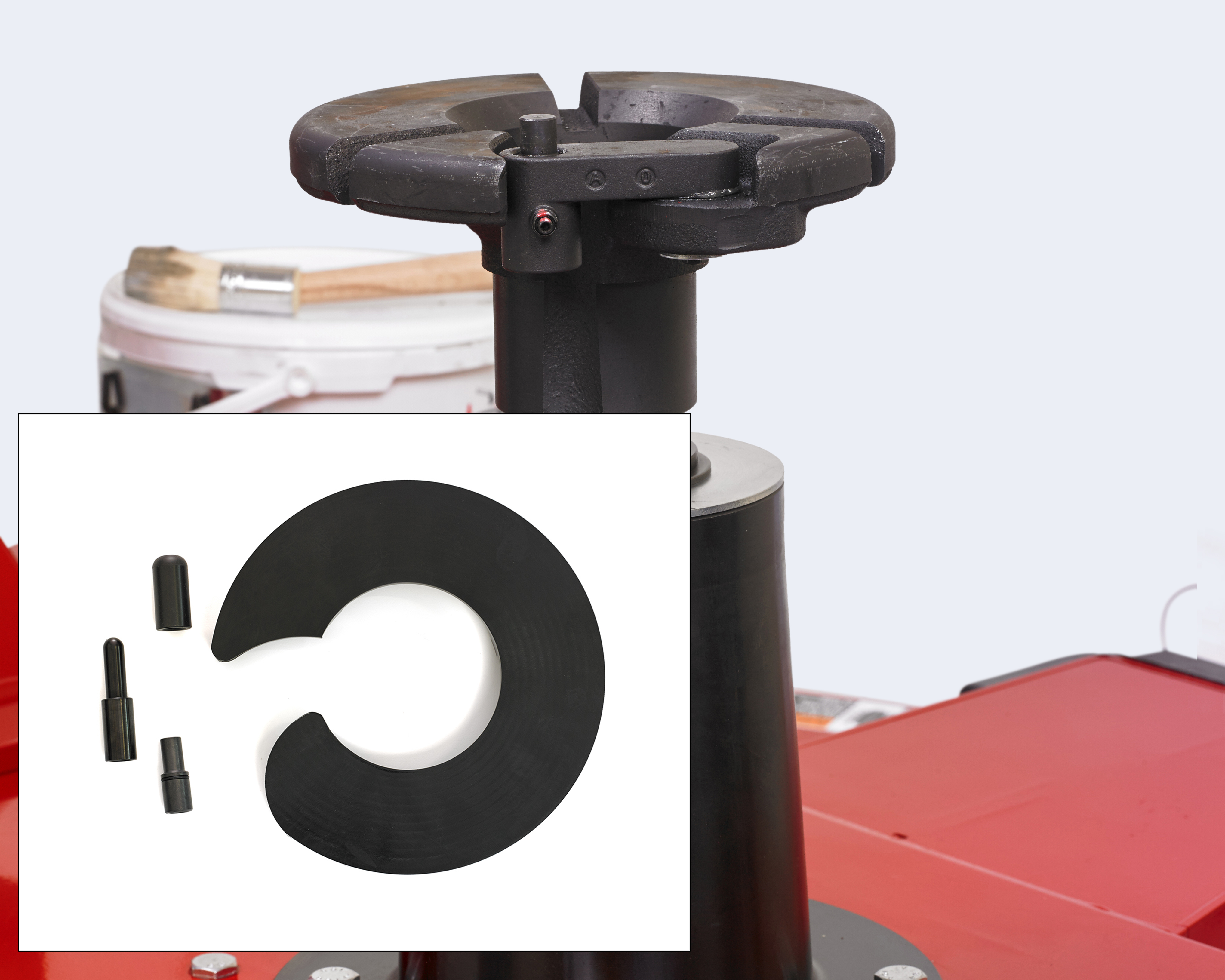 Pour le massage des talons, vous avez besoin d’un démonte-pneus à double rouleau à talon et à pince centrale. En maintenant le serrage, gonflez le pneu à la pression recommandée par l’OEM et remontez le noyau. Approchez un par un le rouleau de talon du flanc du pneu au niveau du rebord de la jante et enfoncez-le d’environ 1/4 de pouce dans le pneu. Faites faire deux ou trois tours à chaque talon.