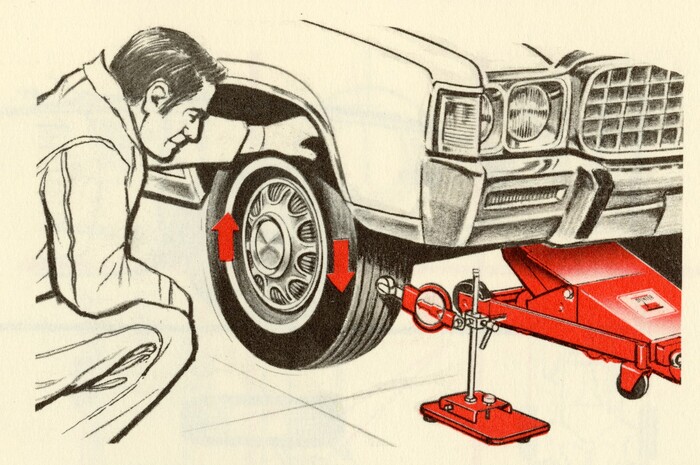 Consider the undesirable action of centrifugal force created by an unbalanced wheel. A wheel that is out-of-balance may not sometimes be critical at slow speeds but may bounce violently at high speeds. Even at slow speeds an out-of-balance wheel will exaggerate the effect of each little bump on the road by causing the wheel to bounce excessively. It is obvious that a bouncing wheel will not hold to the road and should be properly balanced. Also at slow speeds, even though vibration is not particularly objectionable, irregular tire wear continues to shorten tire life.