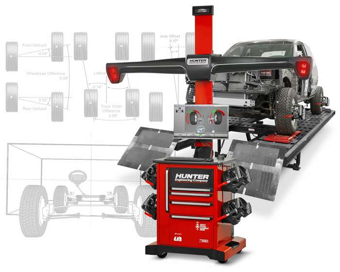 Poznaj technologię firmy Hunter umożliwiającą pomiar kątów w zaawansowanej diagnostyce geometrii kół dla napraw powypadkowych, w tym sprzęt do pomiaru i regulacji geometrii kół HawkEye Elite® oraz opatentowane oprogramowanie WinAlign®.