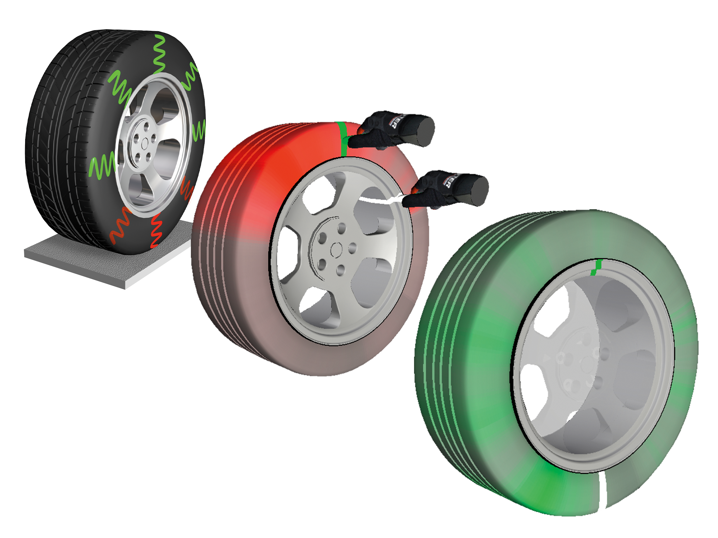 W procesie dopasowania opon i kół firmy Hunter mierzona jest równomierność zarówno opon, jak i kół przy rzeczywistych siłach obciążenia nawierzchni. Na tej podstawie przekazywane są informacje korekcyjne krok po kroku, które często pozwalają zredukować siły drgań o 50% lub więcej.